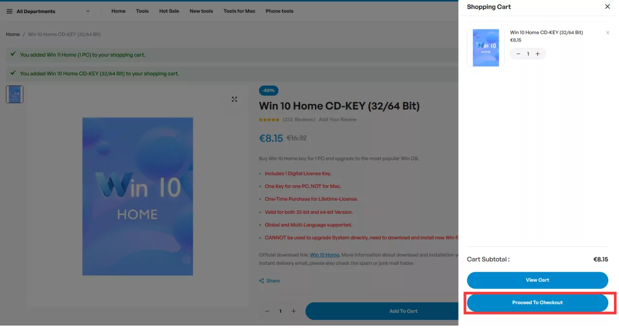 - Win 10 Home Key – 8.15€