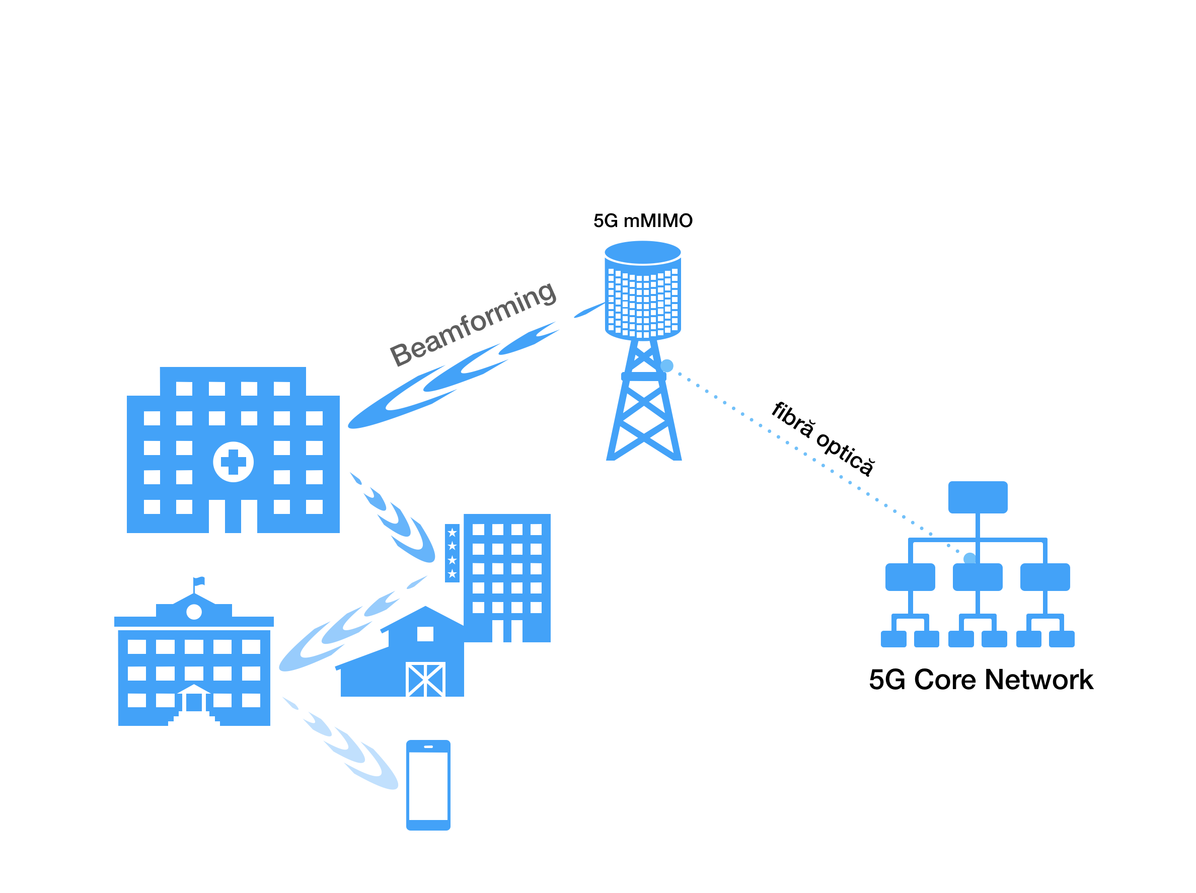 În cazul 5G, numărul ridicat al antenelor ajută la formarea și propagarea radiației într-o singură direcție (super direcțional), ba mai mult, folosește multiple căi de propagare. Tehnica asta de direcționare precisă se numește Beamforming și folosește algoritmi de procesare digitală a semnalului pentru a calcula exact direcția sau direcțiile de propagare.