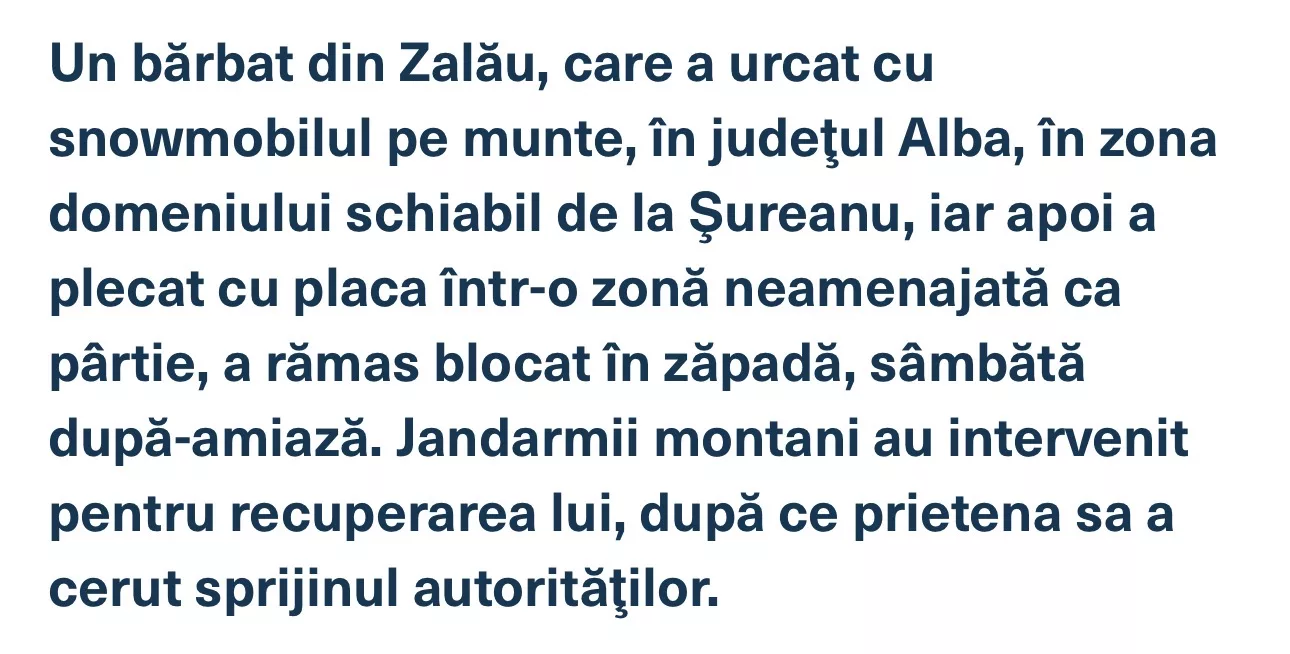 Dar divaghez. Deci, deși sunt așa, vă jur cu mâna pe inimă că îmi doresc ca intervențiile de genul celei de mai sus, care se întâmplă din cauză că intimat pârâtul a decis să nu respecte indicațiile celor care se ocupă cu asta, punând în pericol și alte vieți și cauzând costuri suplimentare pentru noi, să fie taxate la sânge. Ai decis tu să urci pe munte cu snowmobilul, după care să o iei frumos prin zone nemarcate și ești în pericol de moarte? Sigur, te salvăm, dar costă 1000 de euro pe oră, din momentul în care ai sunat la salvamont. Ai intrat în mare, deși era arborat steagul roșu și l-ai și înjurat pe salvamar, că tu înoți de când el se juca cu aia în țărână? Pac, te salvăm, evident, dar te costă 5000 de euro plus taxe. Eventual stai în pârnaie până plătești.