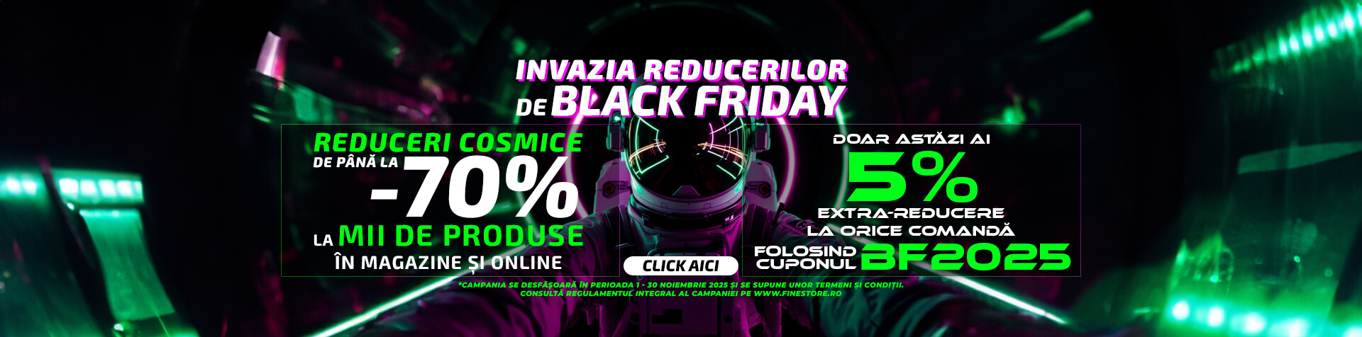 Black Friday la FineStore nu e doar despre reduceri. E despre experiența completă: prețuri reale, nu fake discounts, cadouri automate la cumpărături, surprize prin newsletter, și livrare rapidă cu ambalaj impecabil. Produsele ajung în siguranță, echipa răspunde când aveți întrebări, totul funcționează cum trebuie. Și totuși, dacă tot suntem la reduceri, în ziua cu CELE MAI MARI REDUCERI, aveți și cuponul BF2025, cu care primiți un extra 5% reducere la toate produsele de pe site. DOAR ASTĂZI.