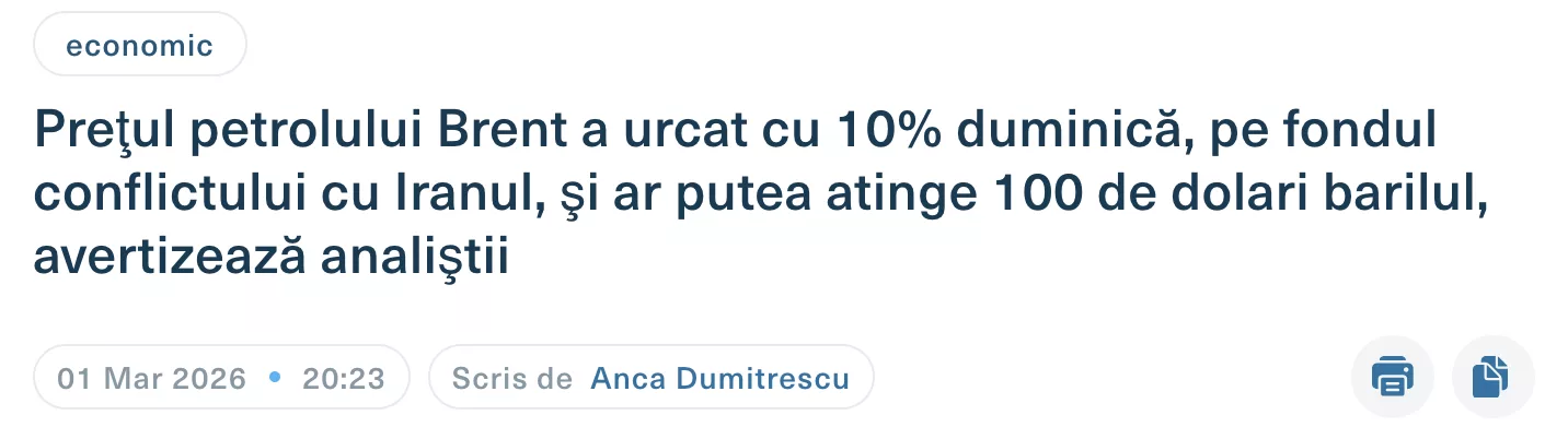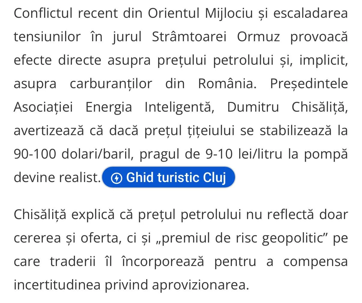 Strâmtoarea Ormuz, aflată pe coasta Iranului, este o gâtuire criticăa transportului maritim, prin care trece aproximativ 20% din petrolul consumat zilnic la nivel global. Odată cu blocarea sau nesiguranța navigării pe această rută din cauza atacurilor, piețele internaționale adaugă imediat un adaos de risc geopolitic. Prețul barilului de petrol pe burse reacționează violent în sus. Iranul deja a blocat strâmtoarea Ormuz, a incendiat vreo 3 nave, nu se mai trece prin strâmtoare. Și să nu uităm că Iranul poate lovi și canalul Suez, fără probleme.