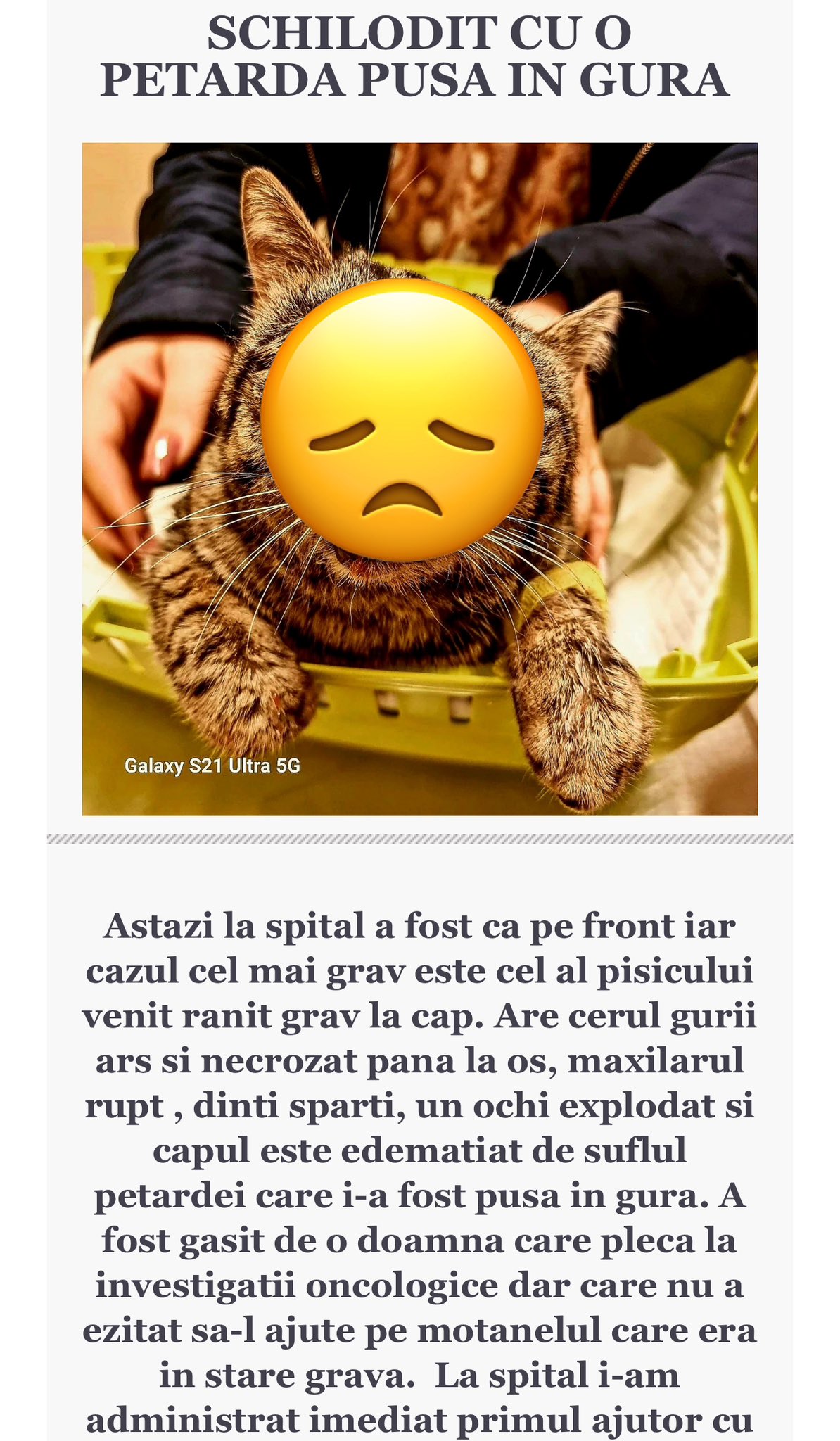 Doi la mana de Craciun si Revelion cel putin 2-3 caini gasesc alergand pe strada mea speriati de mama focului sau altii tremurand ca varga. Pe catelusa de sarbatori clar o inchid in casa unde nu se poate speria sau sa-mi faca infarct de la idiotii care arunca petarde pe strada si pisica la fel.