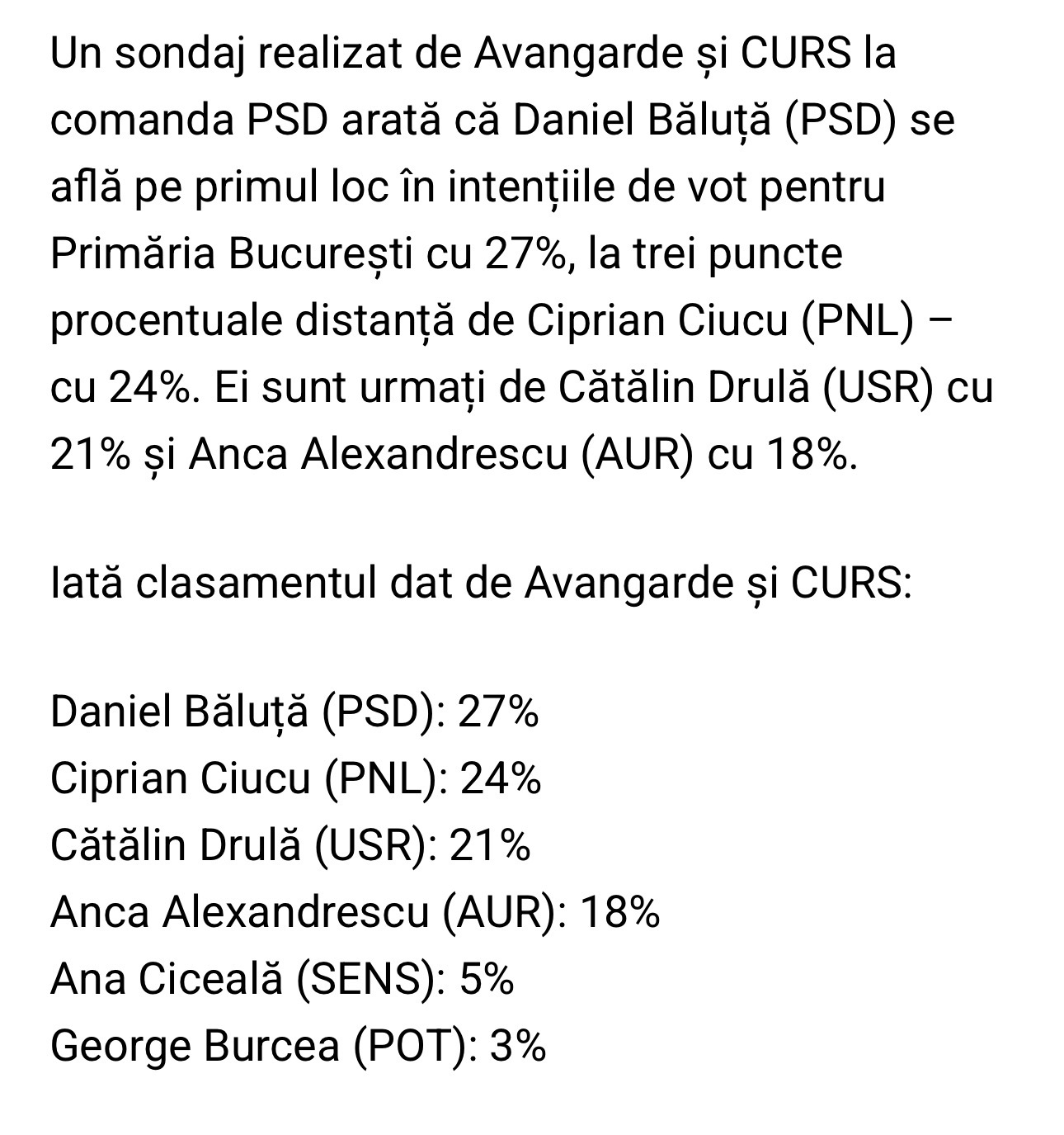 Ana Ciceala daca e perseverenta si consecventa pe linia asta si nu deraiaza ca vrea parlamentar sau europarlamentar cred ca are sanse sa castige primaria in 2032 pe modelul nicusor…. bineinteles daca primarii care o sa fie o sa o dea de gard pe modelul firea