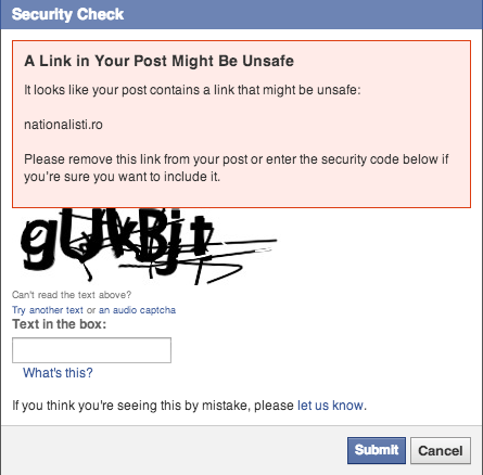 Problema aia cu link nesigur o am si eu. Cumva FB are impresia ca blog-ul meu are ceva probleme. Nu stiu de ce, pentru ca doar ma cunosti – nu cumpar trafic sau vand link-uri.
