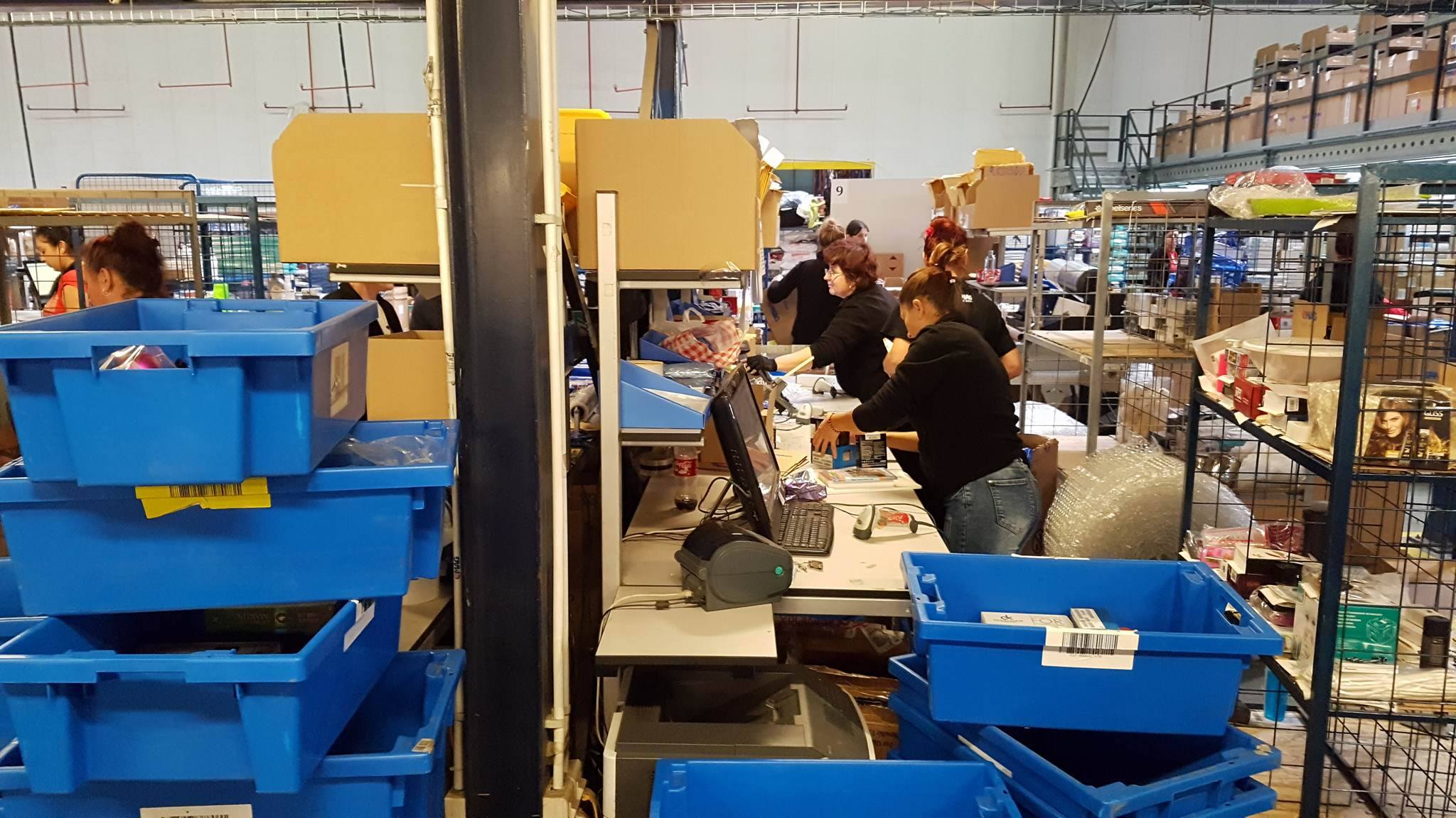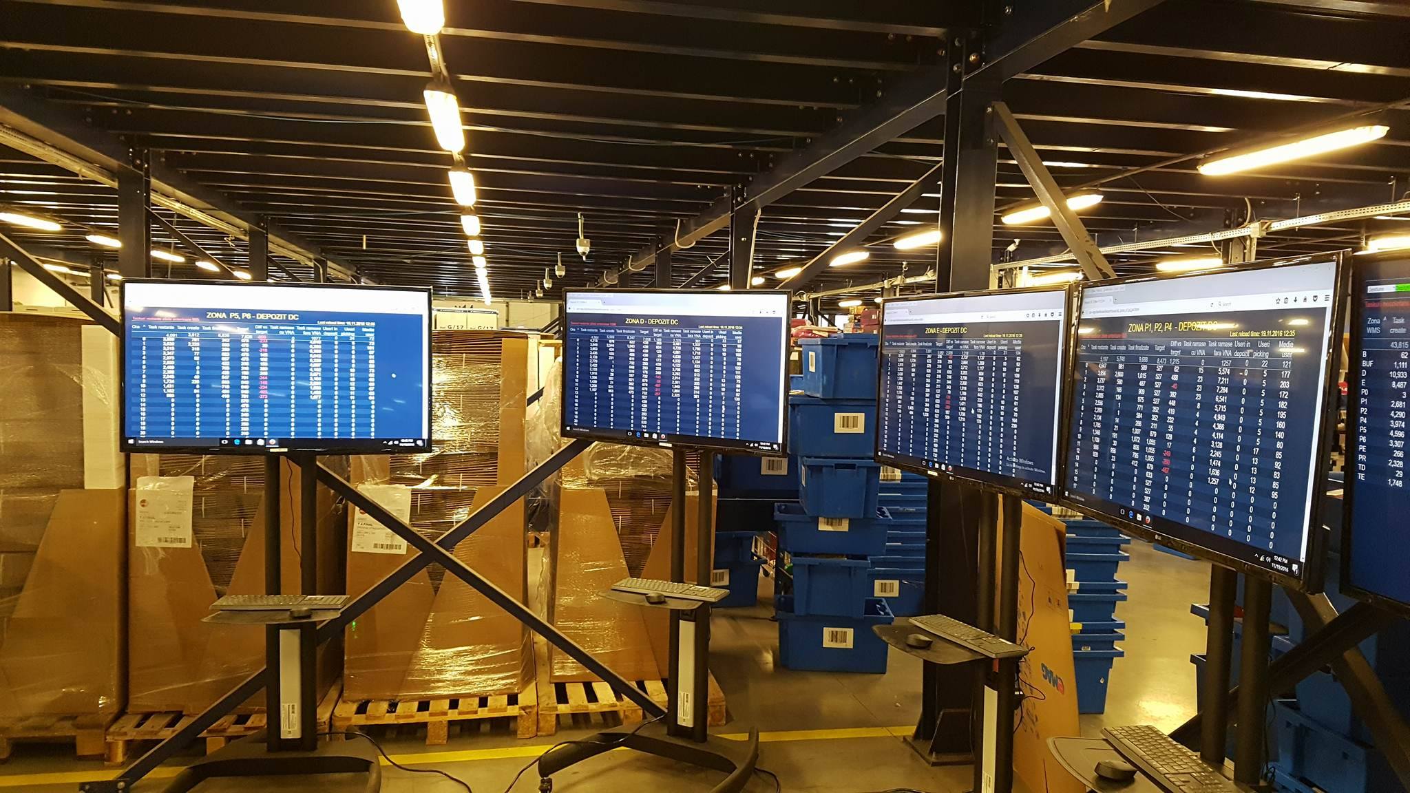 Nea Vasile da comanda pe net de telefon, jucarii si pampersi. Un gigel din depozit printeaza comanda lui nea vasile ´+ a lu nea caisa + tzatza leana + mai multe alte comenzi, arunca fiecare factura in cate o cutie albastra si pleaca cu un runner sa culeaga produsele. Fiecare produs e asezat la o anumita locatie. Se duce la locatia cu telefoane, ia un telefon il scaneaza, il pune in cutia aia albastra care corespunde comenzii lui nea vasile, scaneaza cutia si pleaca mai departe catre locatia cu jucarii apoi catre locatia cu pampersi si tot asa pana a cules comenzile ce i-au incaput pe runner. Cand a terminat de cules comenzile se duce si lasa cutiile albastre la tantiile alea ce se ocupa de impachetare. Alea iti impacheteaza produsele intr-un colet, doua, trei cate e nevoie si le aseaza pe un palet care pleaca spre o anumita regiune. Vine alt gigel si baga toti paletii pt o anumita regiune in duba curierului si de-acolo esti la mana d-lui curier.