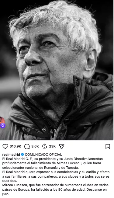 Când mai faceți mișto de moartea lui Mircea Lucescu, încercați să vă aduceți aminte cine a fost el, înainte de ahahaha a virat în tramvai și faptul că nu v-a calificat la mondiale, deși echipa de fotbal a româniei este una de vis, numai unul și unul. Și realizați că, de 40 de ani încoace, străinii vorbesc mai frumos despre fostele vedete române de fotbal, decât vorbesc rupții în cur din rândul cărora au apărut.