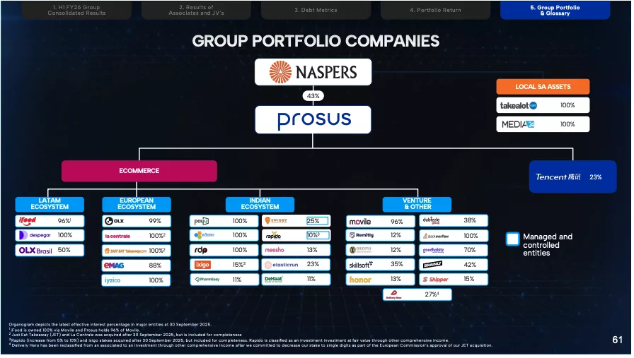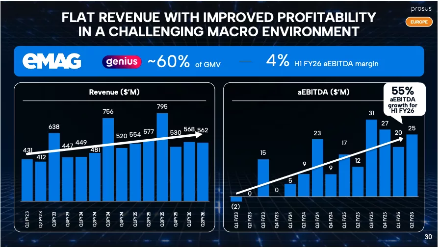 Și mno, iată, acestea sunt datele tehnice ale Naspers, deținătorul emagului, pe 2026. Le puteți citi și voi, aici, pentru că sunt publice și, probabil, mulți dintre voi înțeleg mai multe decât mine din acele date.