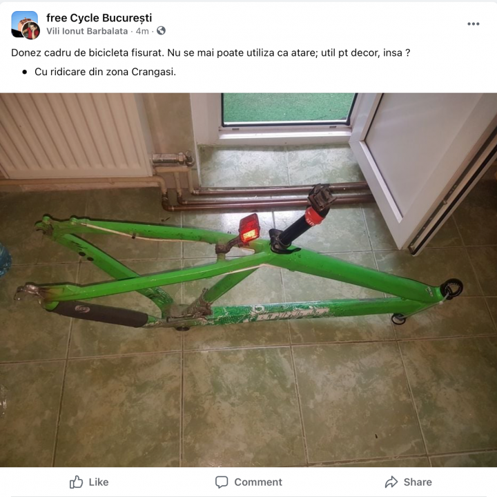 DOnez cadru de bicicletă jegos, rupt, mizerabil și ruginit, e inutil, dar poate la decor? Gen veniti voi să luați gunoiul ăsta, că eu nu am unde să îl arunc, pentru că stau ultracentral și […]