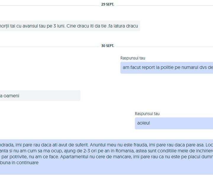 O prietenă care stă în străinătate își închiriază apartamentul din Constanța. Ce vedeți în print screenuri este o selecție de discuții dintre ea și amatori de chirie români verzi, puternici, puternic ancorați în loessul primordial, […]