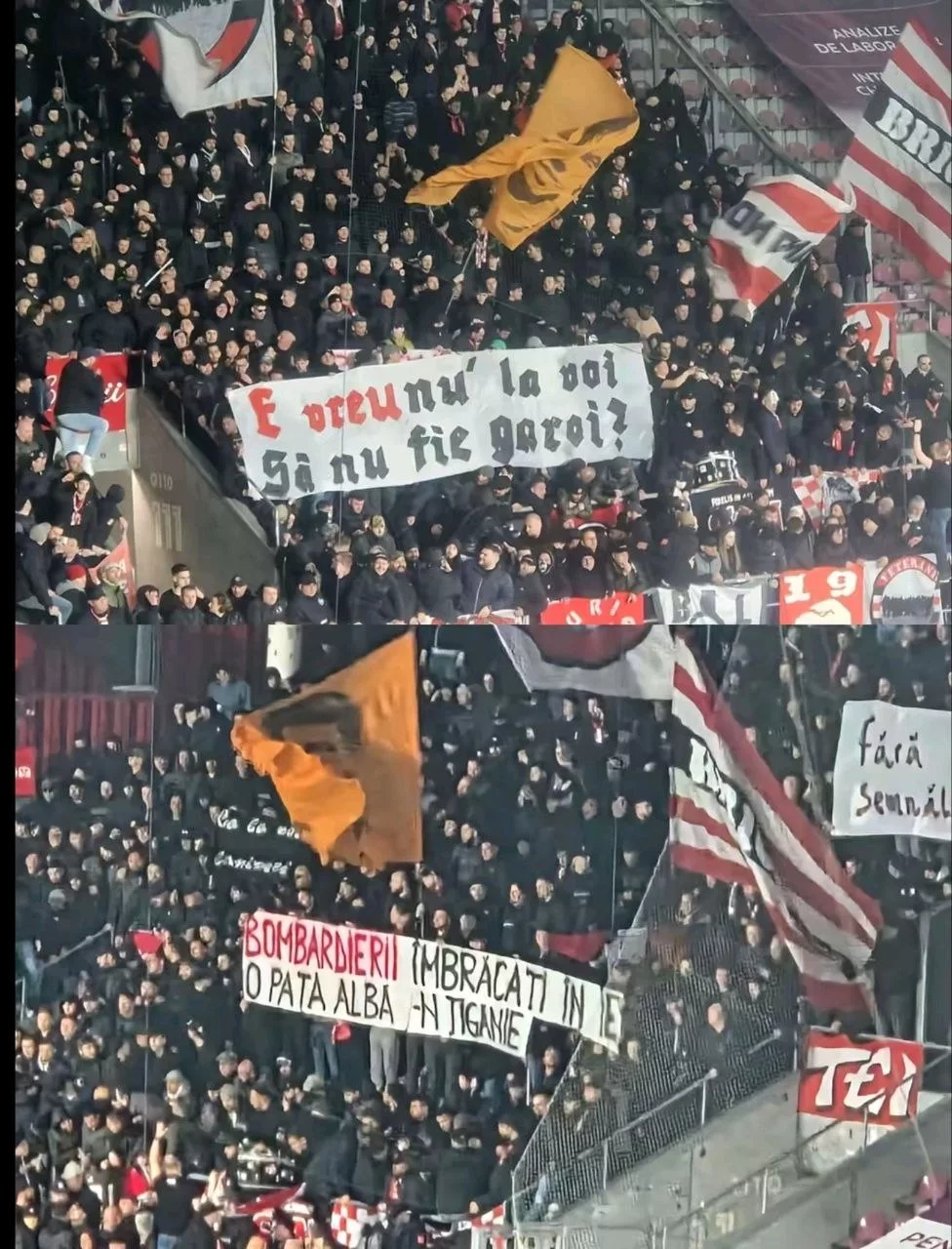 nu stiu daca stiti dar in romania se verifica bannerele de jandarmerie inaintea meciurilor. bannerele cu “mircea crisan” au fost interzise de jandarmerie, astea cu garoi au trecut.