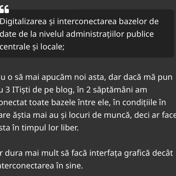 Citind articolul vecinului, m-am oprit aici: Corect, s-ar putea face în câteva săptămâni, trei oameni – easy game, easy life. Am mai auzit chestii de genul „eu pot să fac asta cu maximum €5000, ce […]