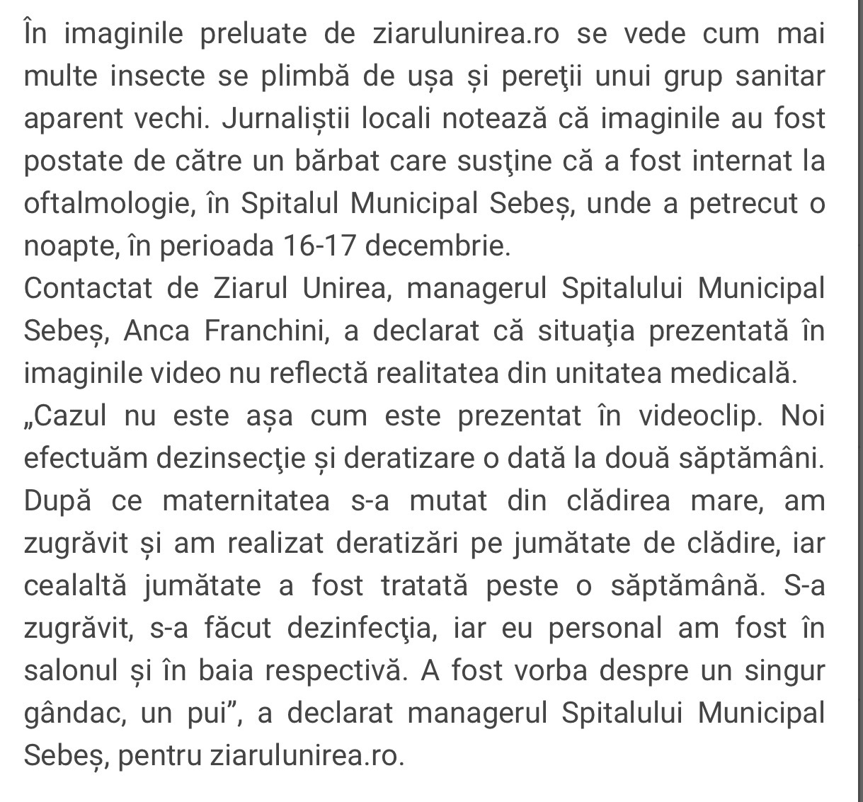 Managerii de spitale care au spate baban își permit astfel de glumițe. Gândacii ăla mari și jegoși care le țin spatele sunt problema.