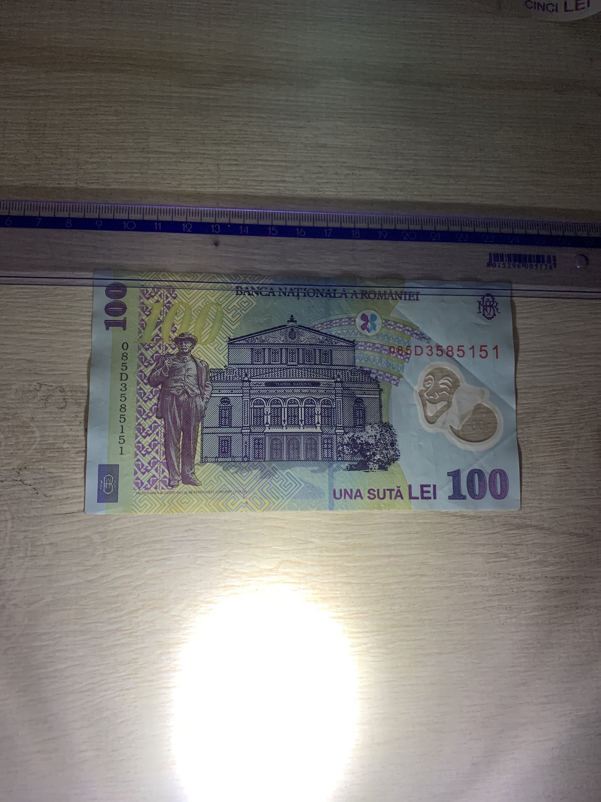 Am pus o bancnota de 100 de euro sub lampa, lumineaza fosforescent MITA! O fi UV-C…?